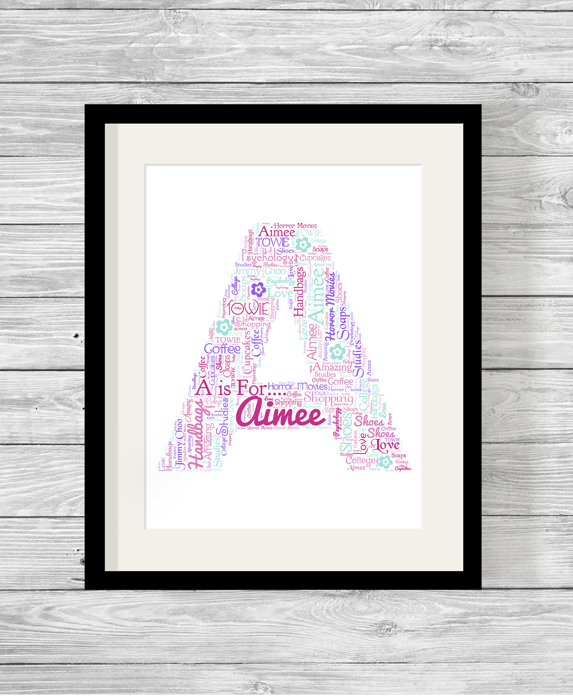 What is Personalised word art? Also known as word clouds it is a list of your words that are fitted into a specific shape, giving it an artistic look.