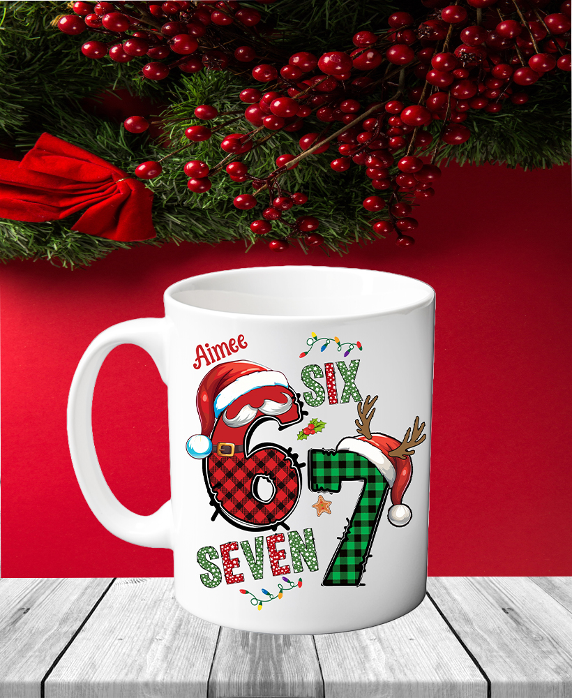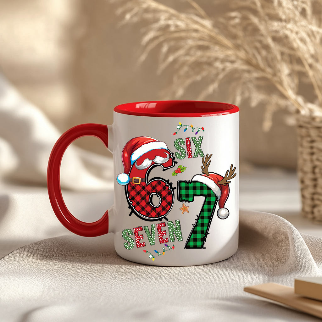 Featuring the iconic 6 7 meme in a fun holiday design, this 11oz mug is perfect for teenagers and meme lovers.